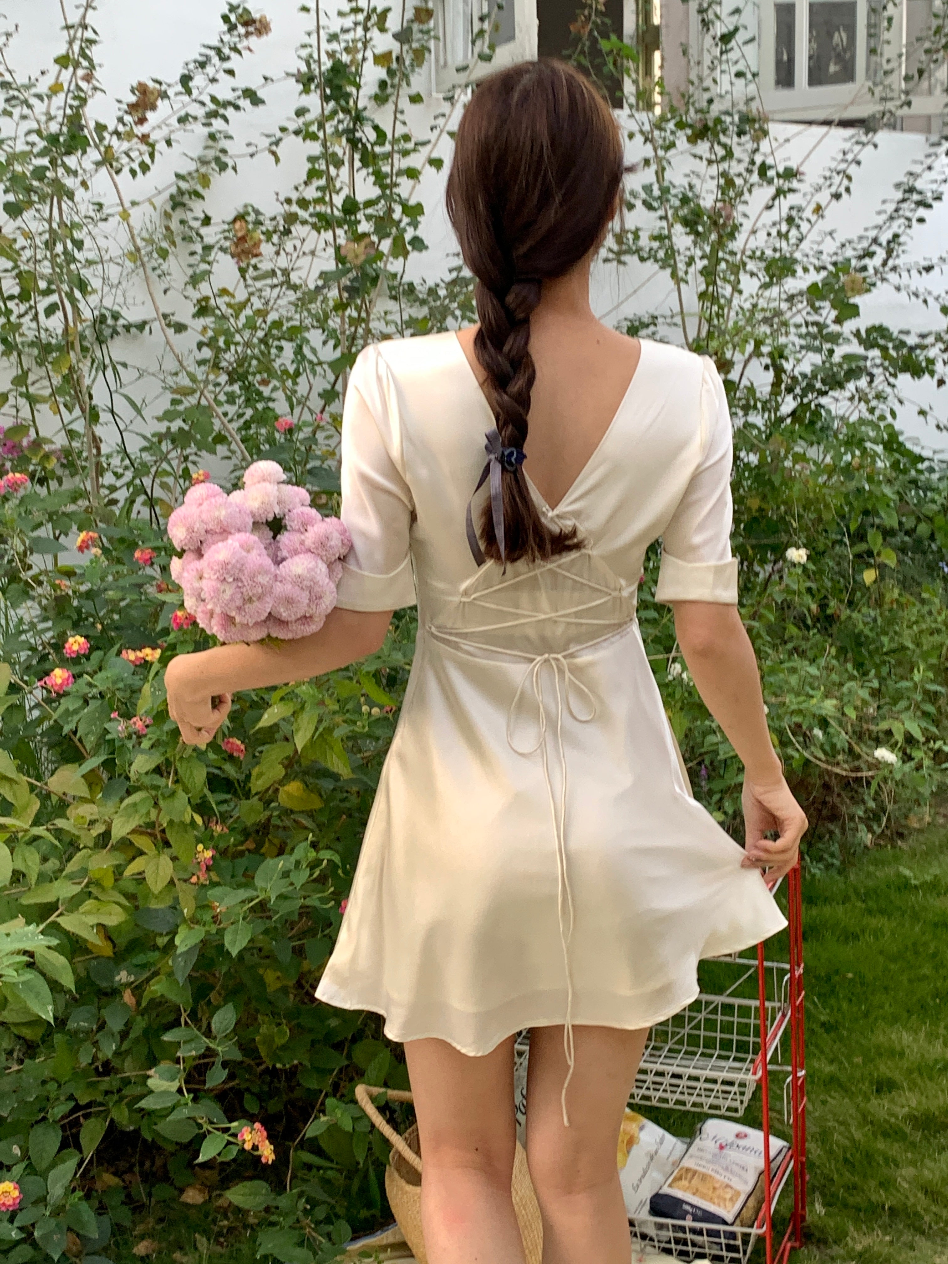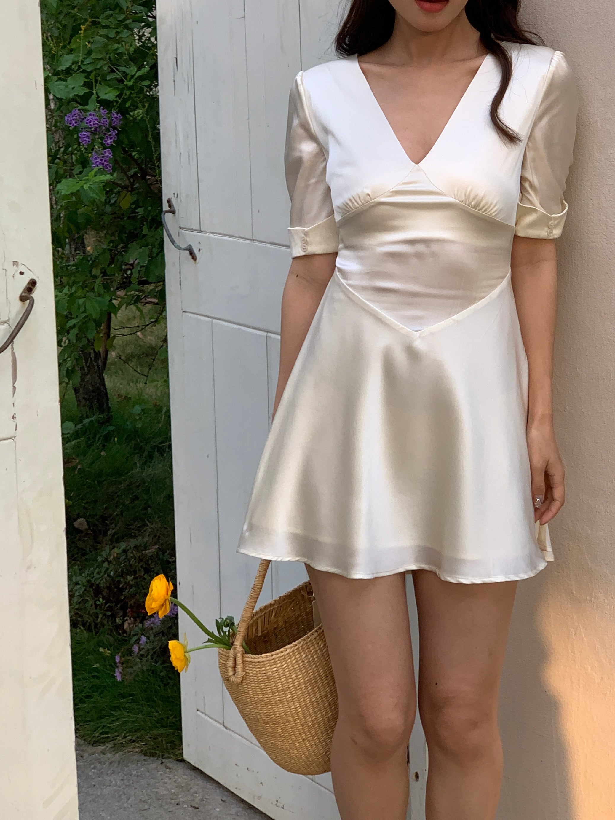 Made from a luxurious champagne silk with light stretch, this is the perfect mini.